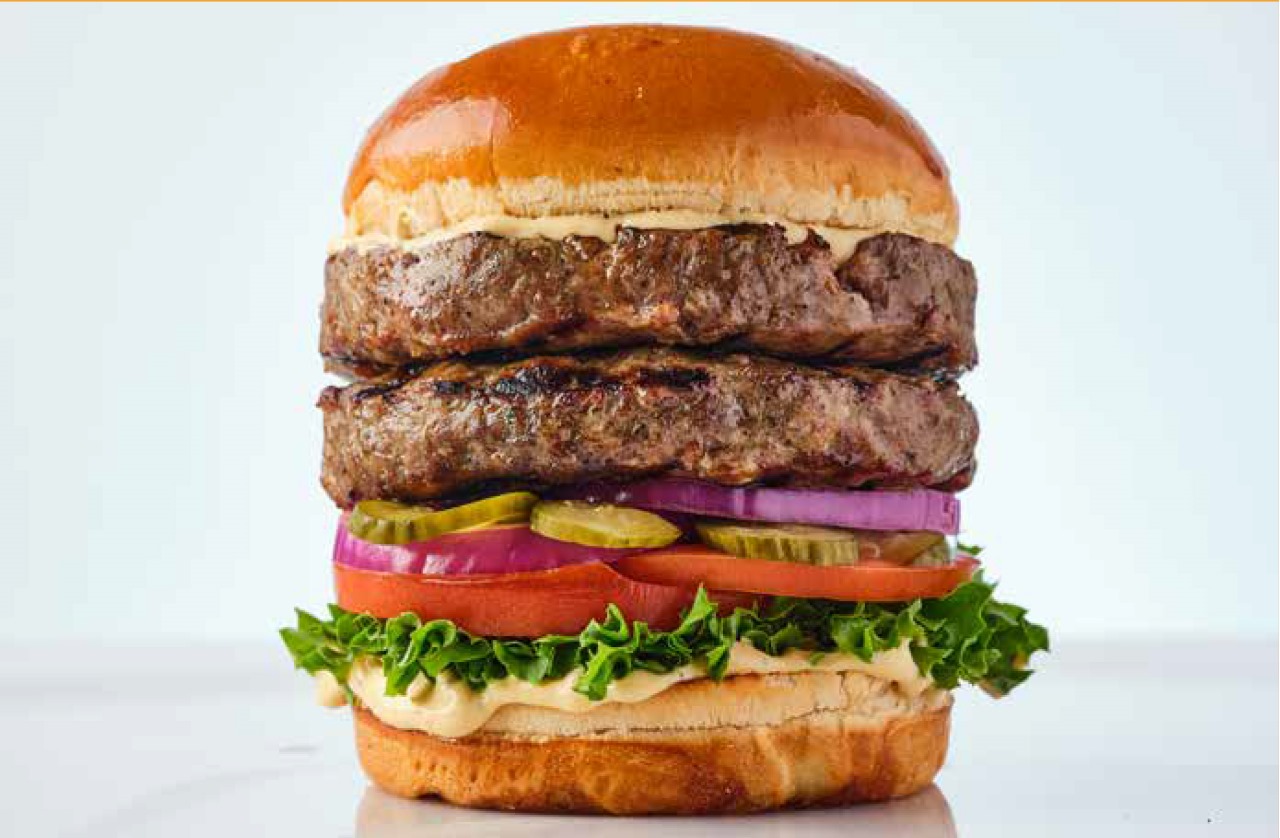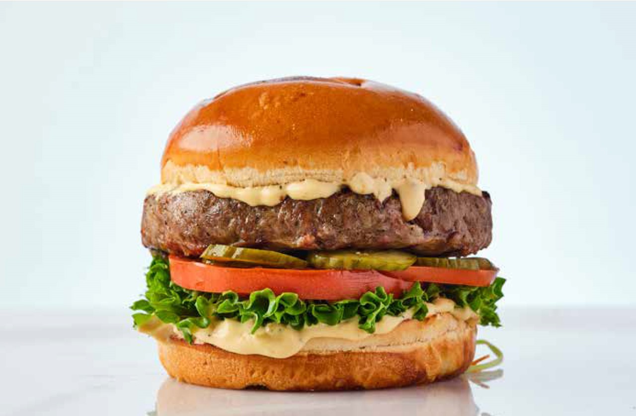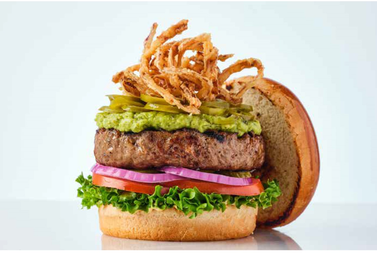 همبرغر 150 جرام من لحم البقر الطازج 100%الأفوكادو، الهالبينو، البصل المقرمش، خردل، خس، بندورة، بصل أحمر ومخلل أيولي.