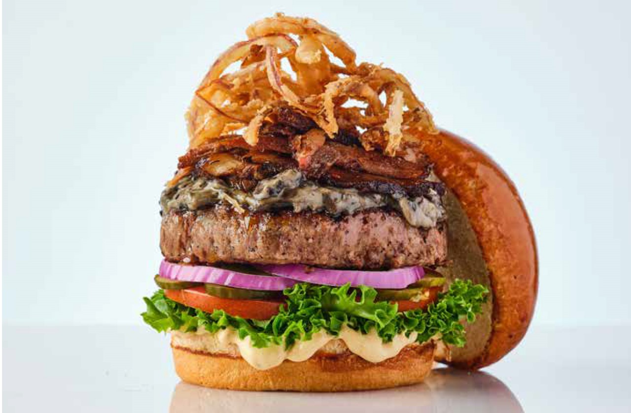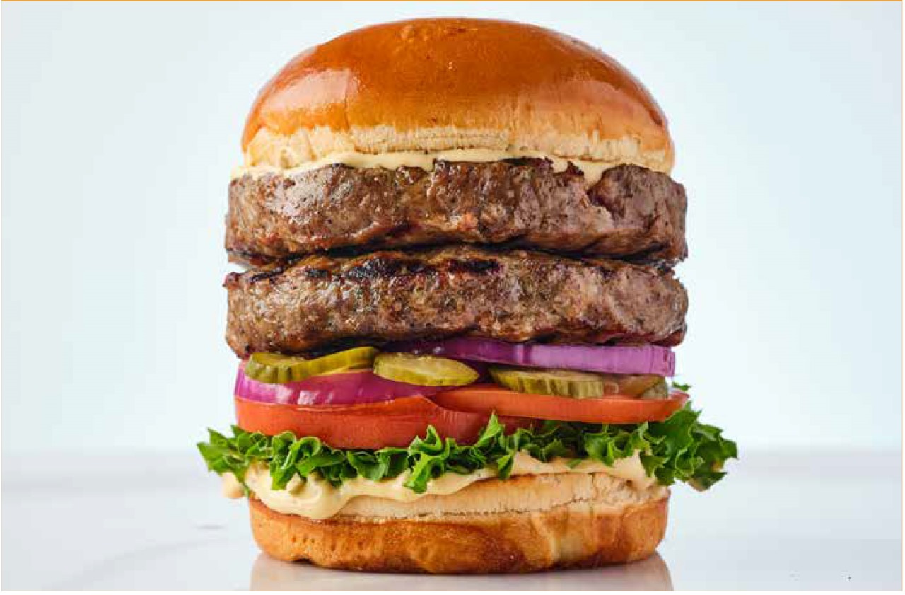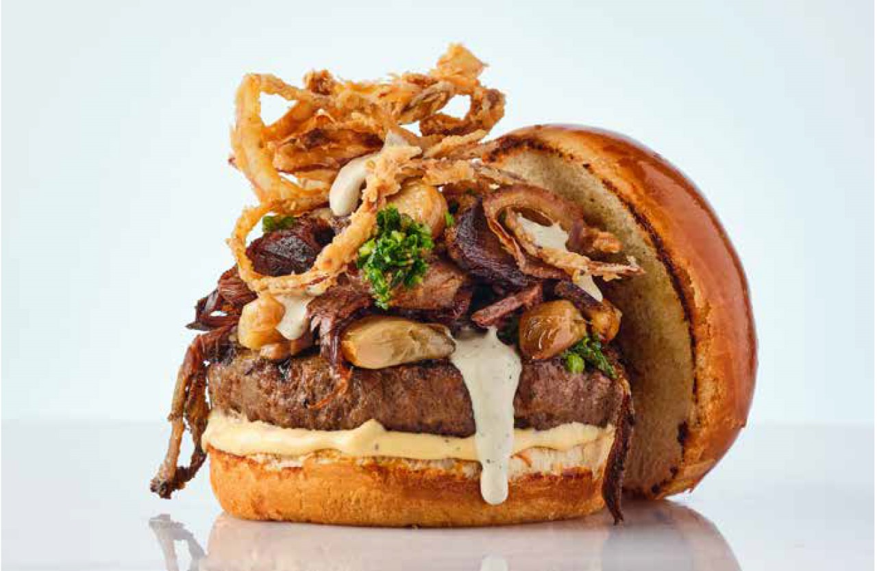 همبرغر 150 جرام من لحم البقر الطازج 100%الأفوكادو، الهالبينو، البصل المقرمش، خردل، خس، بندورة، بصل أحمر ومخلل أيولي.
