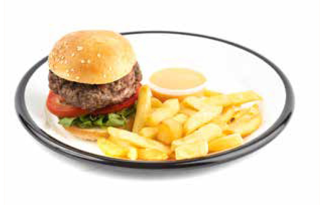 150 غرام | 220 غرامهمبرغر من لحم البقر الطازج 100%إنتركوت، كريمة الفطر / مربى الكرز، جبنة شيدر، خردل ايولي.يقدم مع شيبس.