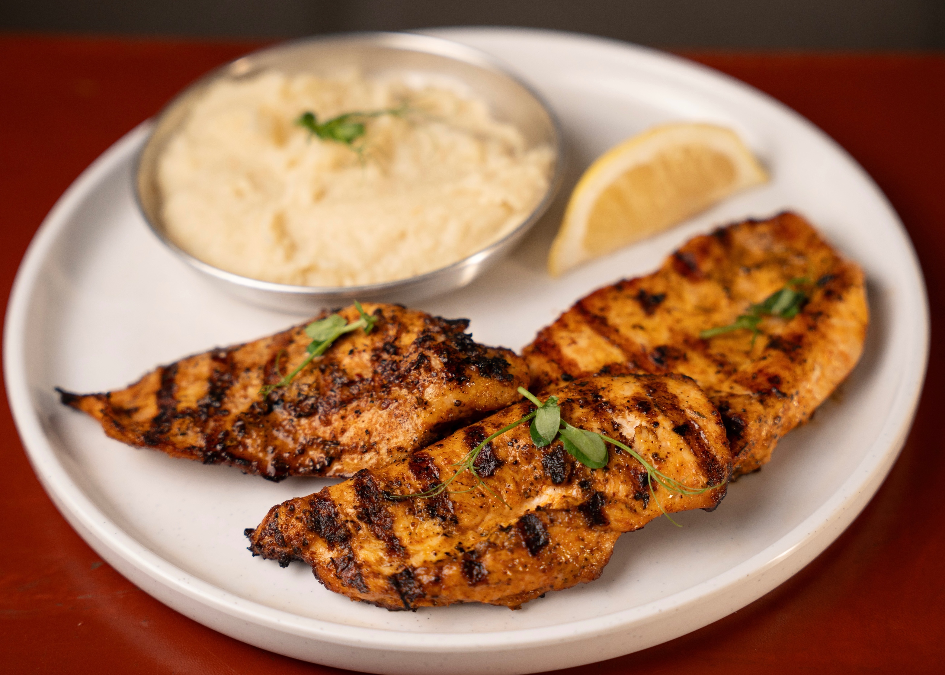 صدر دجاج مشوي مع التوابل -تشيميتشوري مقدم مع سلطة خضار/بطاطا مهروسة /تشيبس