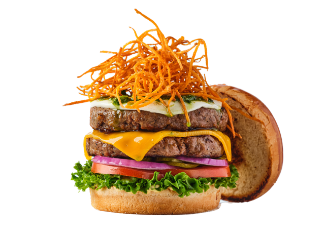 220 غرام همبورغر لحم عجل طازج 100 %، ميكس أجبان، بطاطا حلوة كريسبي ، أيولي خردل، خس، بندورة، بصل، خيار مخلل* بامكانكم طلب خبزة خالي من الجلوتين مقابل دفع 7₪